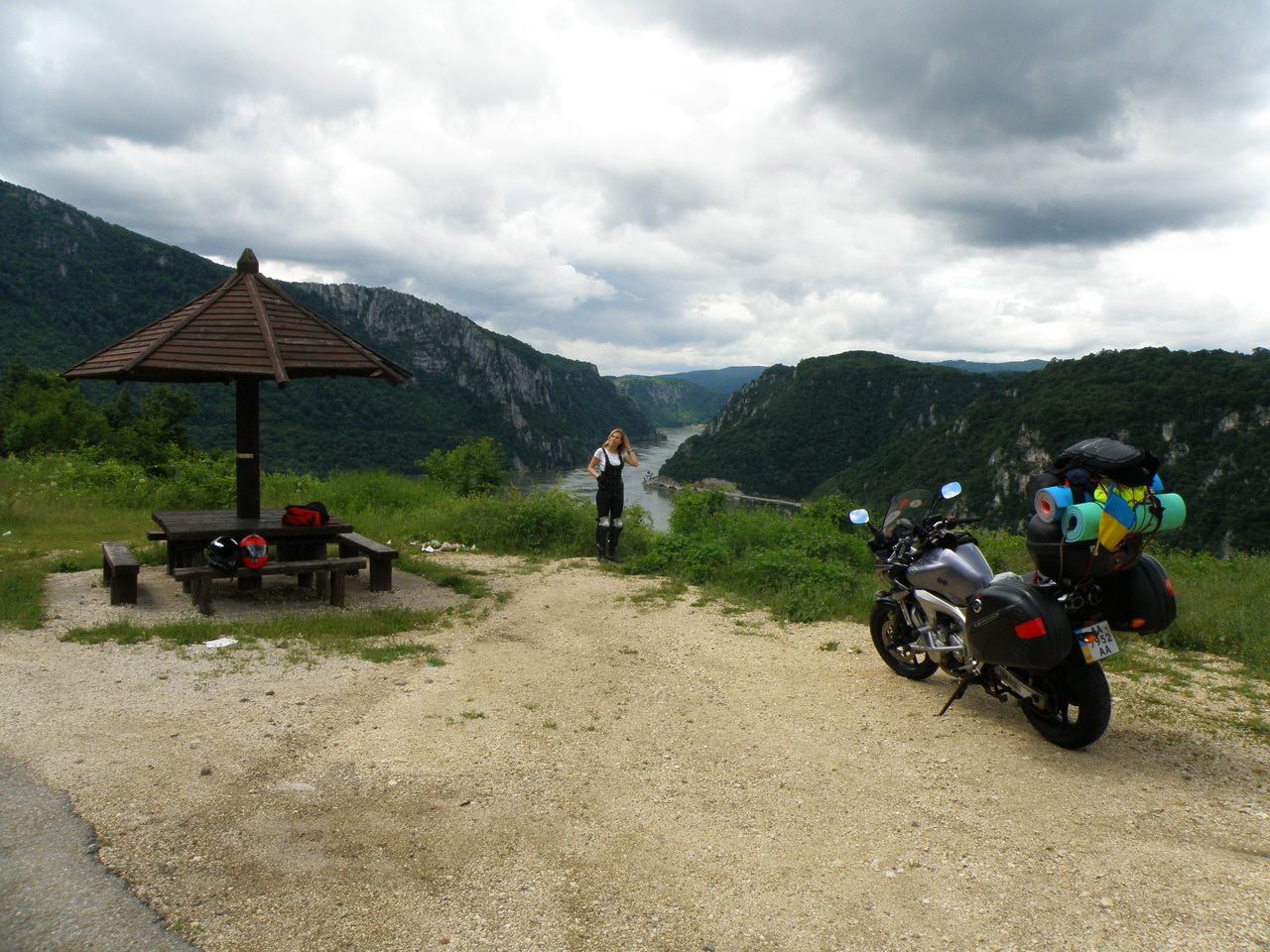 На следующий день мы проехали по румыно-сербской дамбе через Дунай, при этом попытались поменять леи, но обменник был закрыт. Дорога от дамбы на запад довольно интересная, машин почти нет, только изредка попадаются велотуристы. Вдоль трассы стоят многочисленные места отдыха, где можно покушать и отдохнуть, созерцая Дунай и румынский берег. 10 лет назад на одном из рукавов Дуная в скале выбили гигантский портрет Децебала - вождя даков.