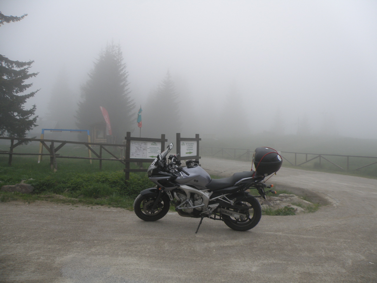 Выехав с центра, мы решили забраться на этот самый Върх. В городе было около +17, мы доехали до 1550 метров, там был реальный дубарь и туча. Никаких видовых площадок по дороге мы не заметили - сплошной лес.