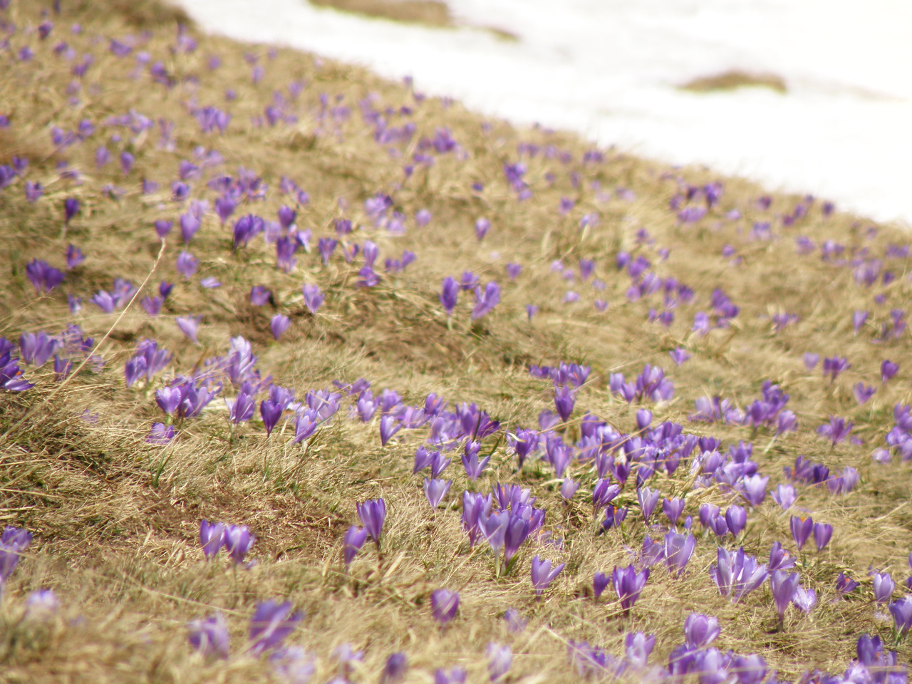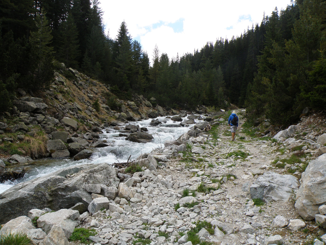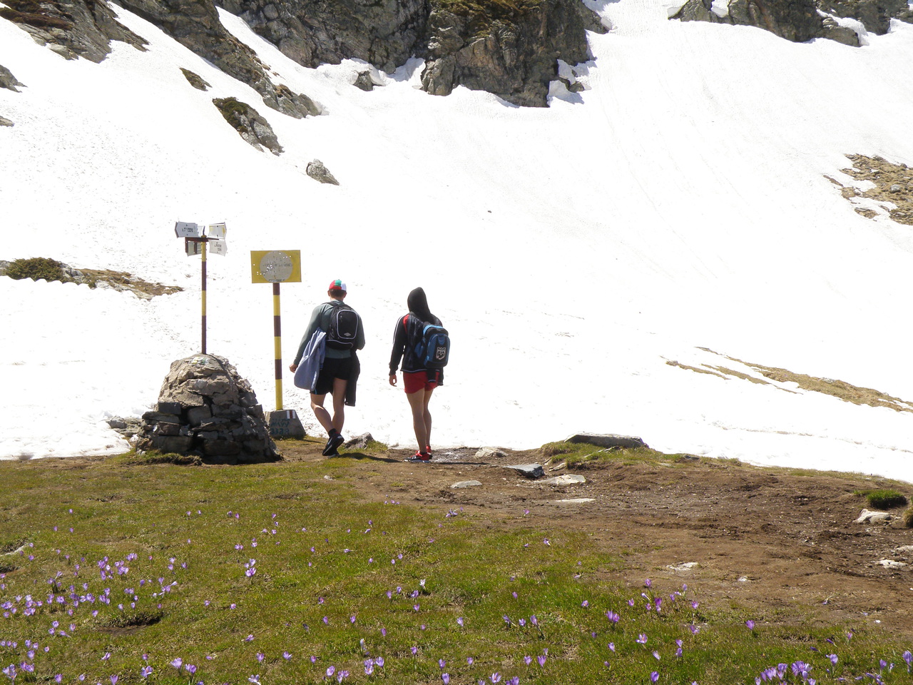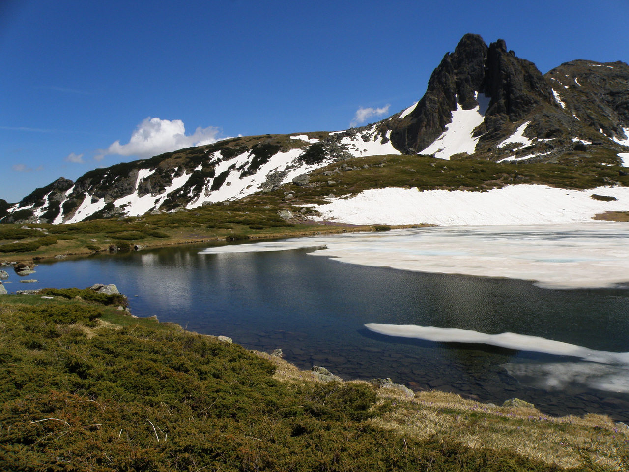 Над всей этой пустошью возвышаются великолепные пики Пирина. Мы решили поиграть в походников и пошли в горы. И так загуляли, что дошли до снега и поднялись до высоты 1900м, стартовав с 1000м. Наверху только начали распускаться некоторые деревья, вокруг были классические горные пейзажи.