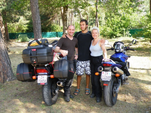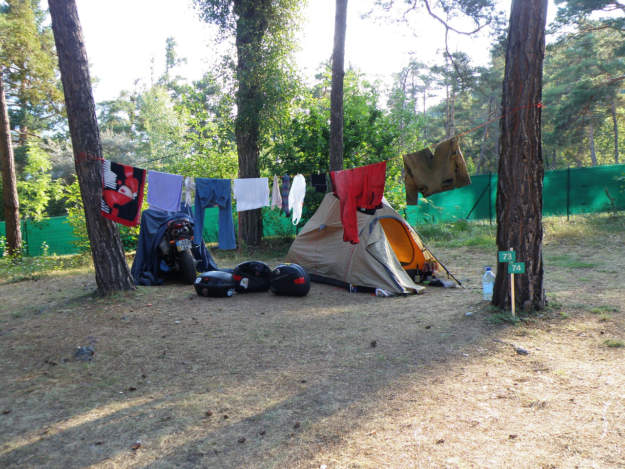 В магазине мы удивились порядку цен на овощи и фрукты. Дыни, помидоры и многое чего еще начинались от 2 евро за кило. Приехав в кемпинг, обнаружили рядом еще два мотоцикла со Швейцарии. Вау, первые мотоциклисты, которых мы повстречали в кемпингах!