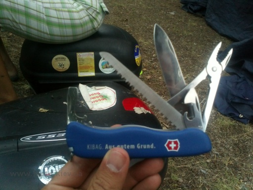 Я показал свой маленький швейцарский ножик, купленный когда-то за 90 грн. Мужик посмотрел на него, достал свой ножик Victorinox Atlas и подарил нам. Для нас это было полной неожиданностью, мы поблагодарили за такой подарок. Позже ножик очень пригодился в Испании, когда мы присели на melon verde - большую зеленую дыню, для которой требовался большой нож.