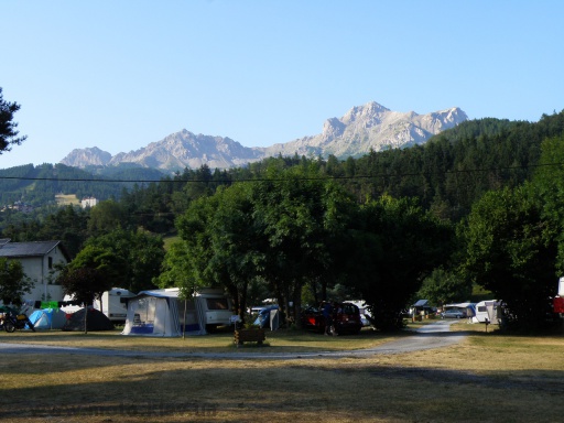Немного спустившись, мы увидели тот самый кемпинг, который нам рекомендовали на итальянской стороне, хоть до него и было около 20 км, но это километры были по сплошному серпантину и вообще перед перевалом стояла табличка, запрещающая ездить после 8 вечера и до 6 утра! Так что мы правильно сделали, заночевав прошлую ночь на итальянской стороне.