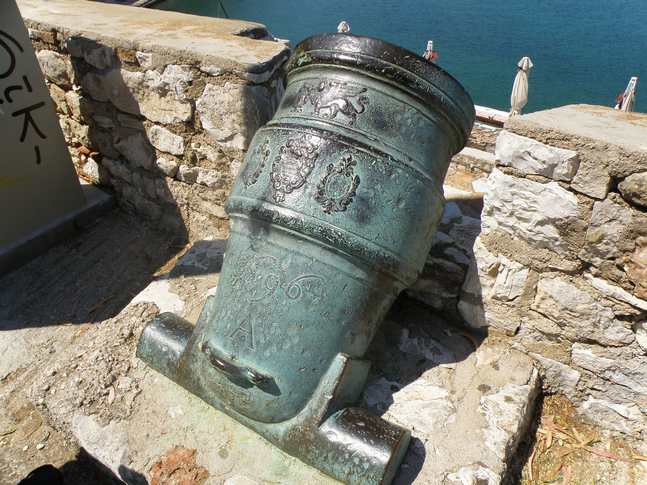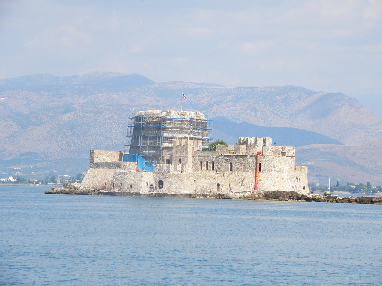 После посиделок с французом мы поехали дальше на юг. На часик заглянули в Нафплион - город с тремя средневековыми крепостями. Две стояли в городе и одна в заливе. Ловлю себя на мысли, что эти прогулки на пару часов в экипе приносят очень мало удовольствия. Тож, мы немного попипались по городку и поехали дальше. Причем довольно легкомысленно проехали мимо дешевой заправки. Дальше бенз был намного дороже. Главное правило для Греции (и для большинства стран в Западной Европе) - видишь дешевую заправку - заправляйся! Цены на заправках одной сети могут отличаться на 20 евроцентов (5 грн).