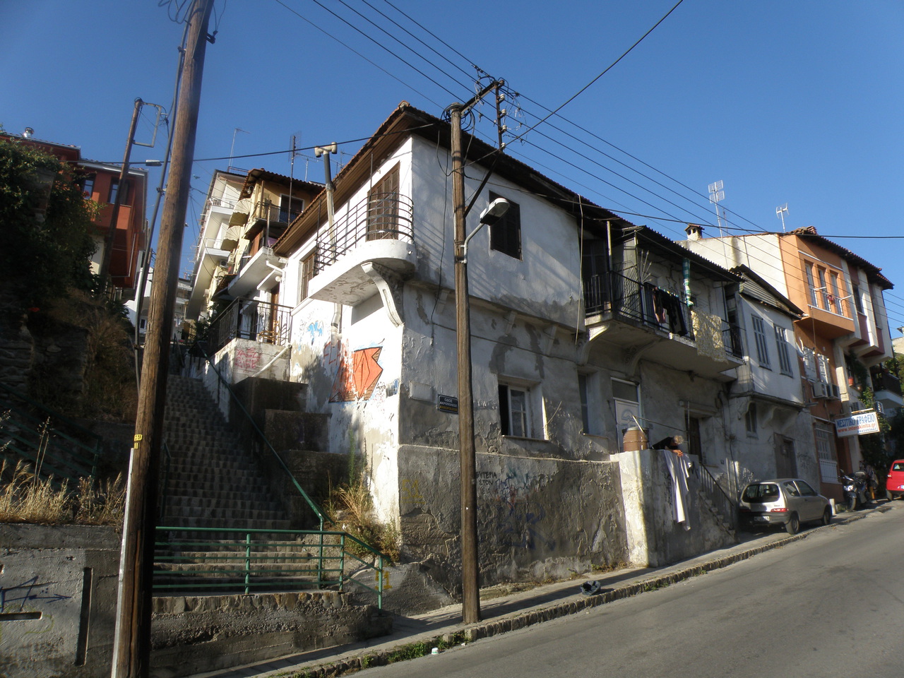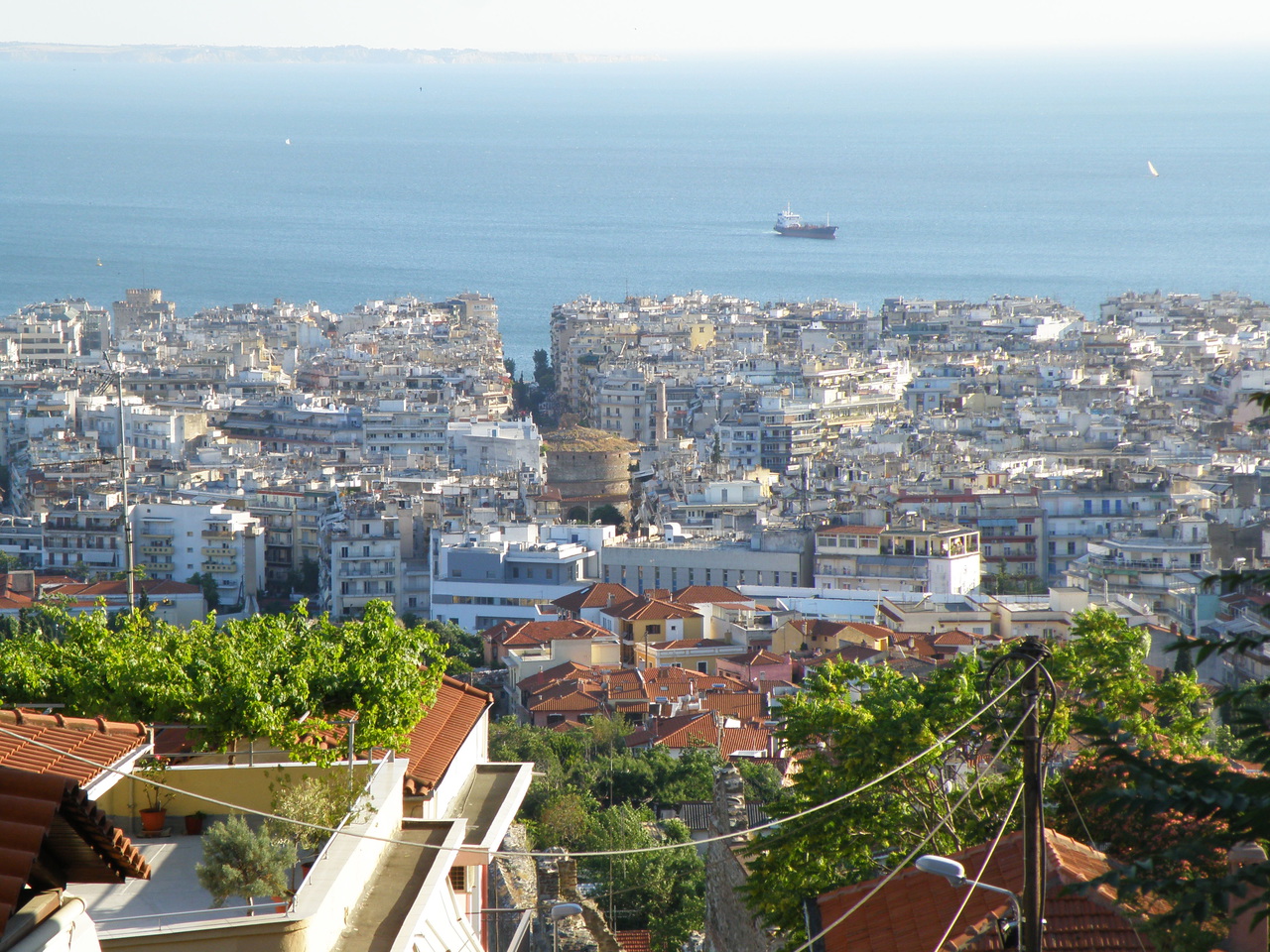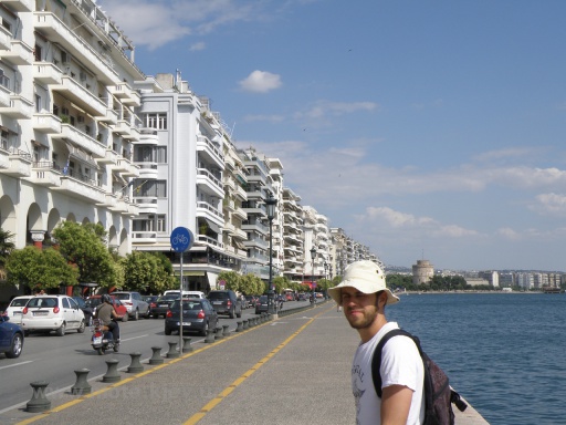 С Ситонии мы поехали в Салоники. В Салониках решили остановится в хостеле. Хостел располагался на очень крутой улочке, когда я на нее заехал, то понял, что лучше не тормозить, а то просто упадем. К счастью, чуть выше хостела была ровная площадка. Хостел сходу не понравился многочисленными надписями "то не делай, то не пипай, то за отдельную плату..." Мы оставили шмотки и пошли гулять по пеклу Салоников. К моему удивлению, город оказался не настолько плох, как все любят рассказывать. Да, в центре ошивались всяческие индусы, африканцы и прочие лица неэллинской национальности, но их было не больше, чем всяческих телепузиков на Крещатике. У моря, кроме бесконечных балконов, ничего особенно не запомнилось. А вот если подняться чуть выше, то узкие улочки невольно переносят вас в Османскую Империю. Вдруг мы увидели мента (чуть ли не впервые за неделю) и двух прилизанных ребят, которые фоткались напротив дома. Так и есть, это знаменитый дом, в котором жил Ататюрк. Если поднятся еще выше, то открывается чудесный вид на город.