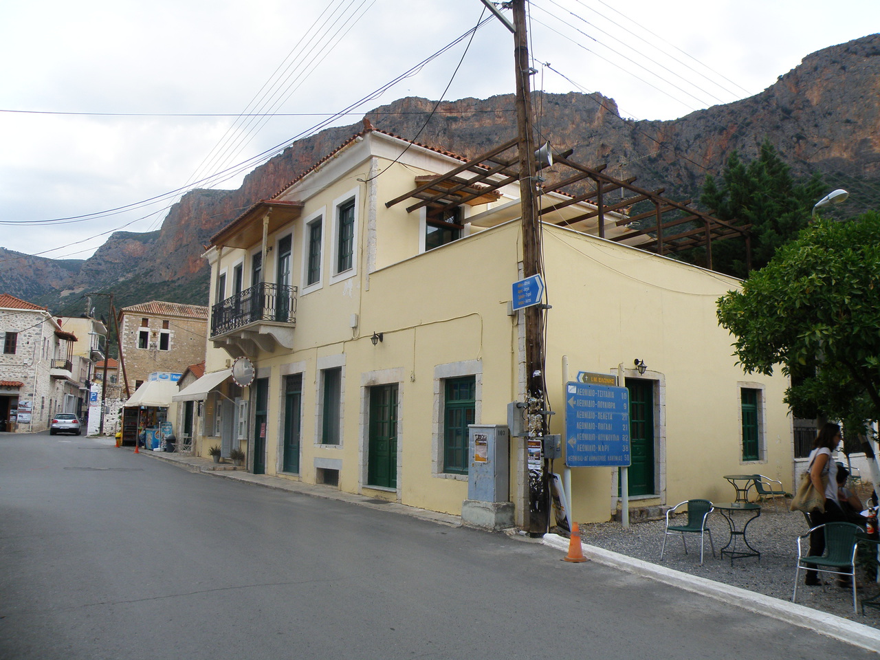 Этот небольшой городок славится своими баклажанами (именно они изображены на сувенирных магнитах). Туристов тут немного, так как дорога сложная. Тем лучше для нас, чем дальше заезжаешь от туристических мест, тем интереснее становится. Леонидио окружают красивые скалы с красноватым оттенком, а сам городок живет простой сельской жизнью.