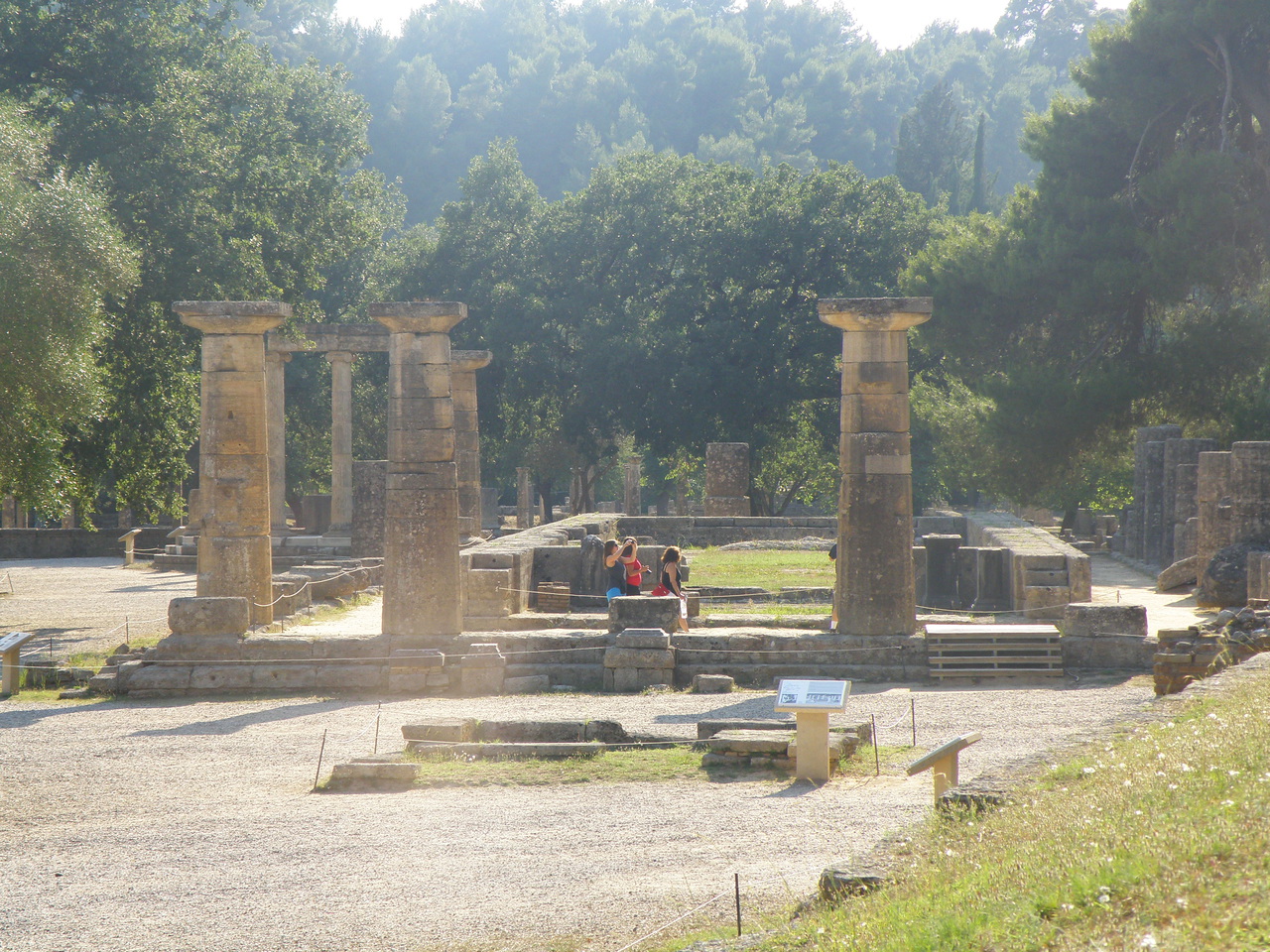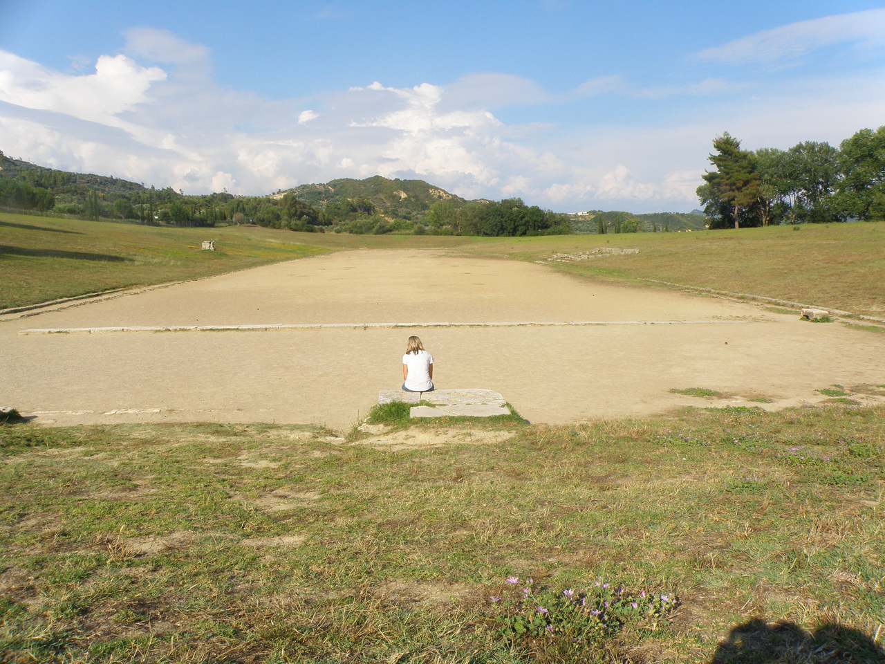 Самое смешное мы увидели на олимпийском стадионе. Стадион никогда не имел каменных сидушек, только земляные склоны по бокам. Археологи определили, что это стадион, только по каменному периметру стадиона и десятку вип-мест в центре. И вот на этом стадионе я насчитал аж пятерых людей со свистками!