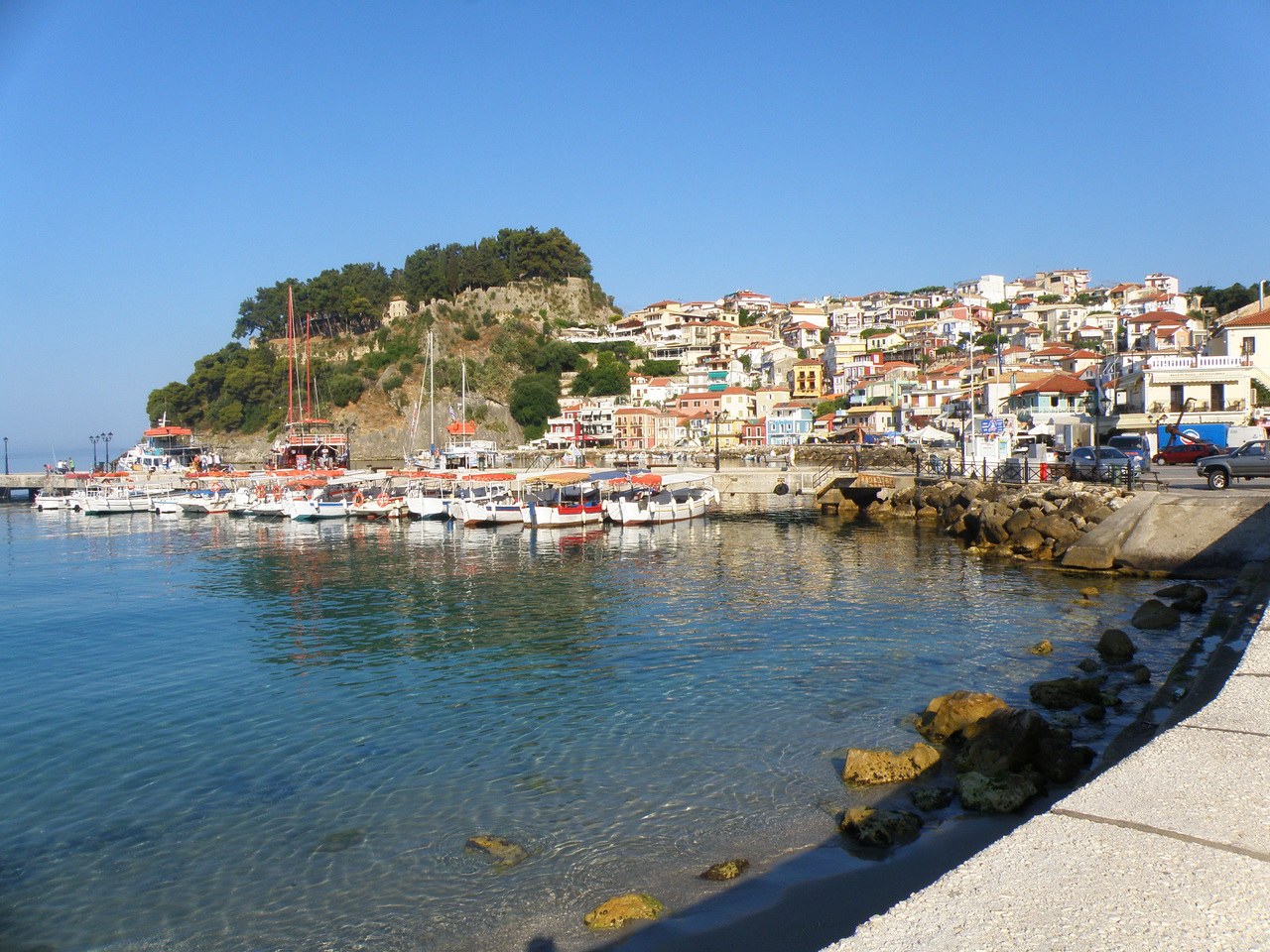 В Парге мы остановились в гестхаузе. Поели пахлаву, покупались в море, сплавали на остров, полазили по крепости, сходили на соседний пляж через оливковые рощи, которые якобы охраняются злыми собаками.