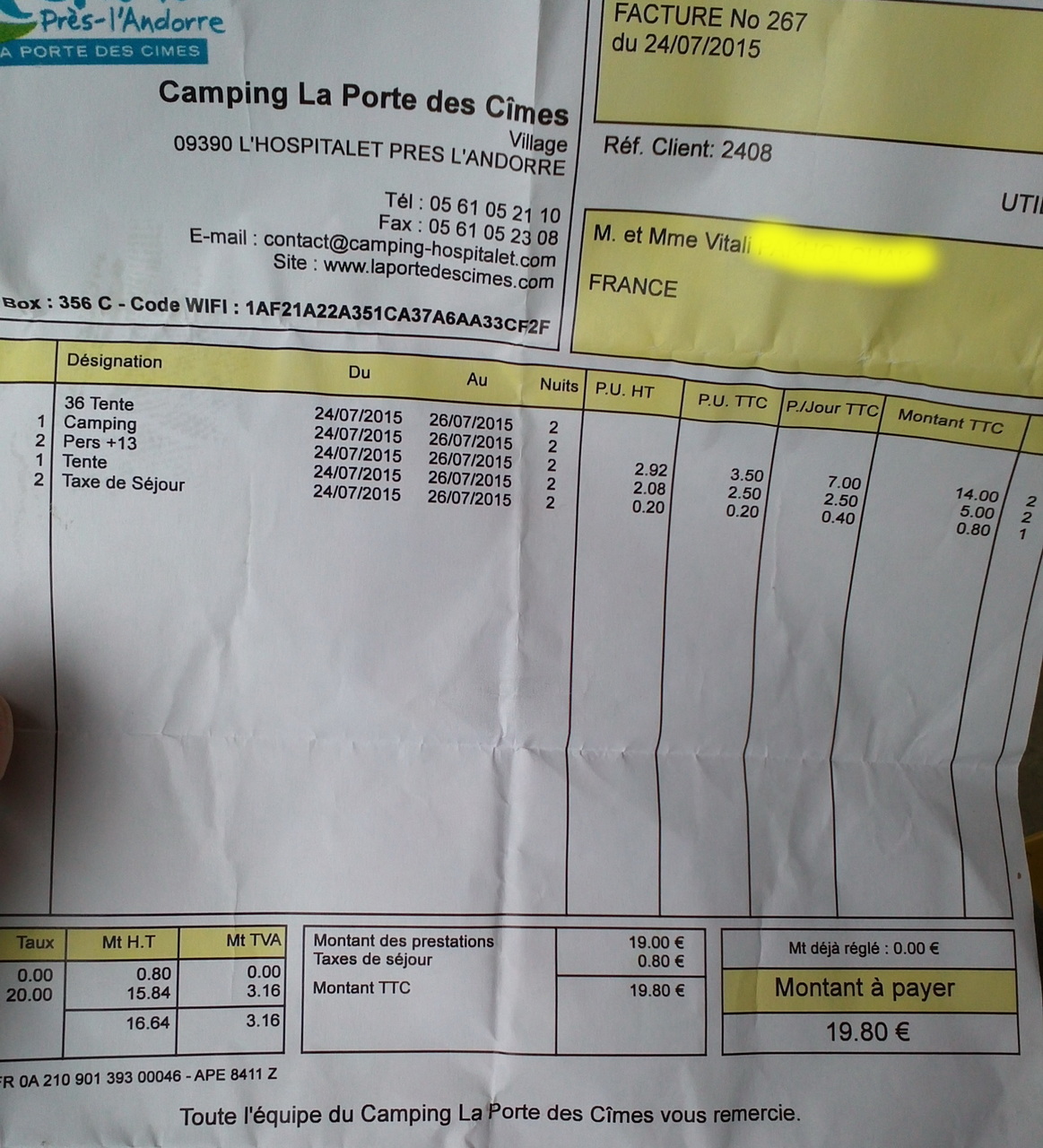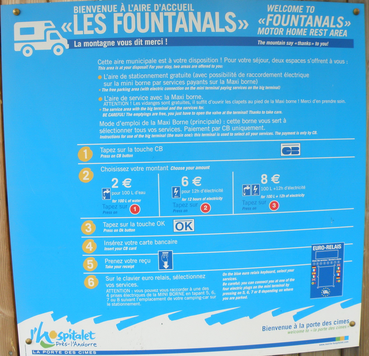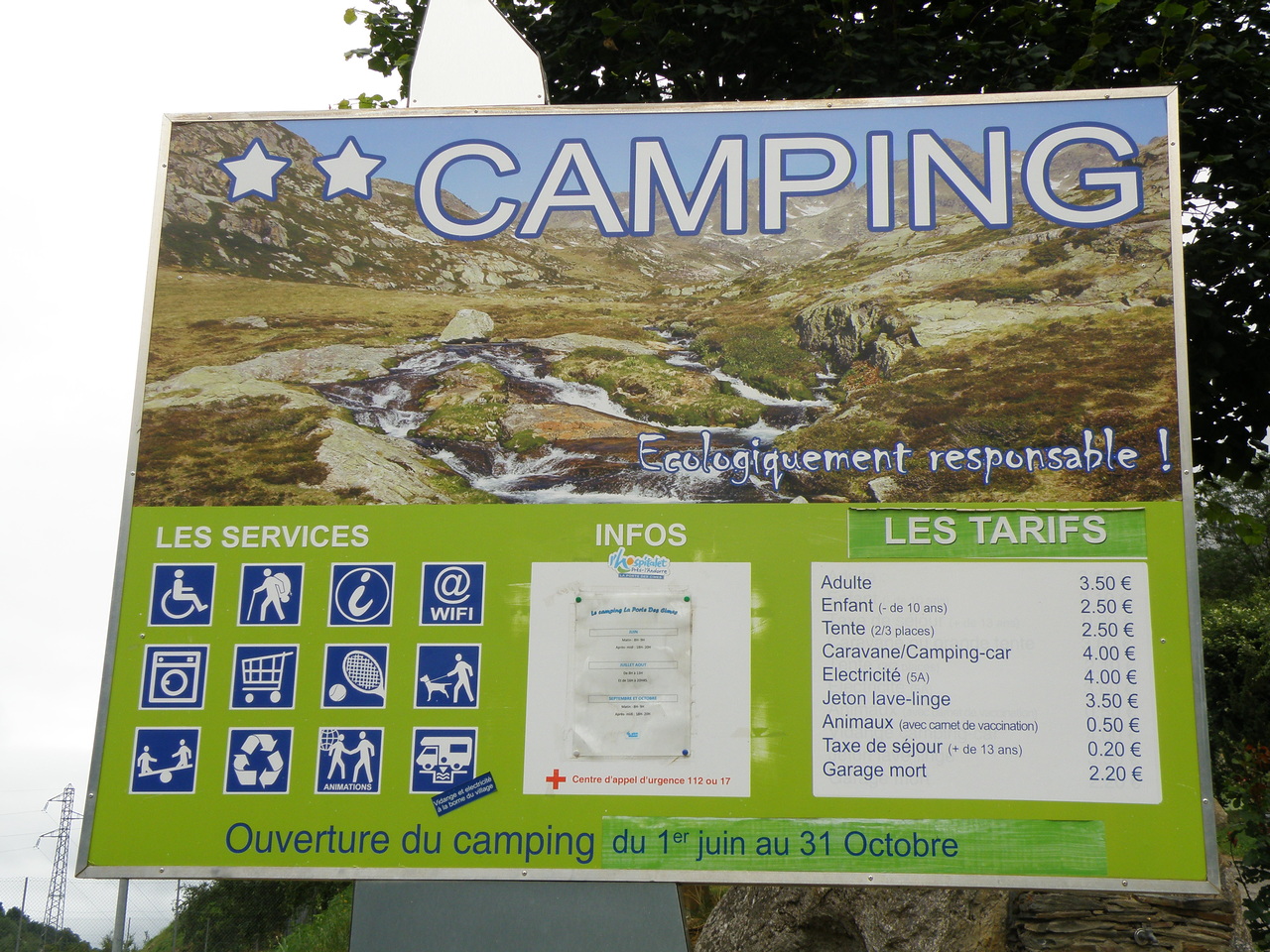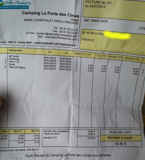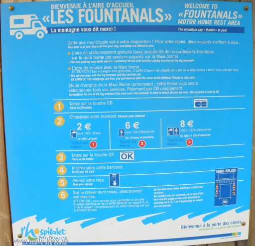 Кемпинг в Л'Оспитале-пре-л'Андорр встретил нас табличкой Accueil и парнем на ресепшнене, который не очень парле англе, но вроде немного понимал. Сей кемпинг был тоже муниципальный (как и предыдущий). Если в прошлом мы заплатили порядка 13 евро, то в этом побили наш рекорд по самому дешевому кемпингу - 9,90 евро, и это цена в "высокий" сезон!