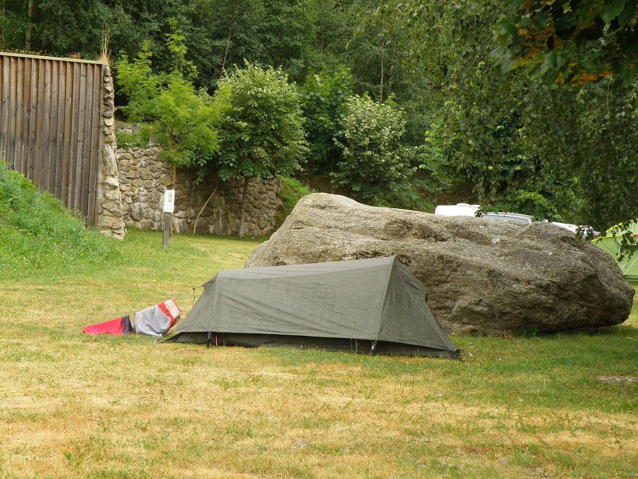 И с ходу столкнулись с одним из минусов муниципальных кемпингов. Конкретно в этом ресепшн закрывался в семь вечера, мы прибыли на закате в районе 8 вечера. Побродив по кемпингу, мы так никого и не нашли. Поэтому решили встать, где есть место, а там разберемся. Кемпинг был забит почти на 100%, мы еле нашли свободную парселу, только начали раскладываться, как к нам подъехал мужичек на велике, как оказалось, он был с ресепшена и даже парлякал англэ, и вежливо нам объяснил, что это место забронировано на сегодня. В итоге нам таки нашли клочок земли, чему мы были неслыхано рады.
