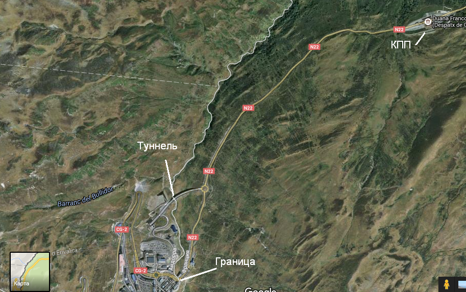 Совсем забыл упомянуть про французско-андоррскую границу! Совмещенный французско-андоррский КПП стоял за пару километров до фактической границы. КПП выглядел самым обычным образом - будки, в них сидели погранцы, но только никто не останавливался. Все просто проезжали мимо, а погранцы им кивали из будки, мол, проезжай!