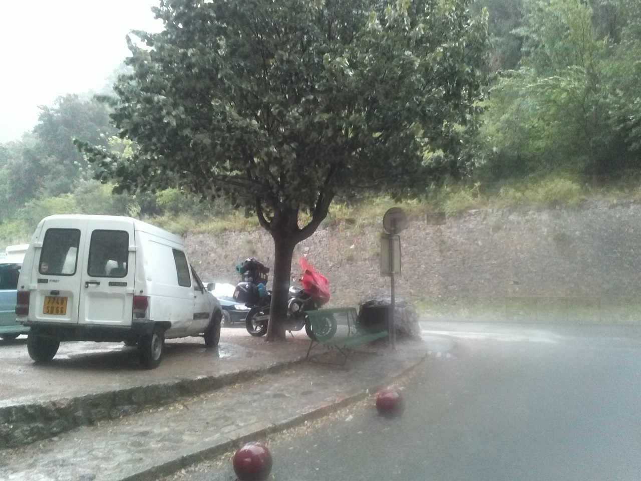 Впереди начали прорисовываться силуэты Пиренеев. За каталонским городом Перпиньяном мы повернули на юго-запад в сторону Андорры, в самый центр Пиренеев. Если утром нас припекло солнце, то теперь впереди маячили грозные тучи. Несколько десятков километров мы с успехом лавировали между грозовыми облаками, но в итоге ливень нас накрыл. Спрятались сперва под деревом, а потом в арке очередного средневекового шато.