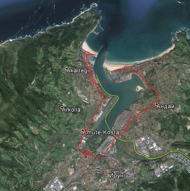 Ирун лежит на самой границей с Францией, в пару километрах от берега Бискайского Залива. Мы первый раз увидели Океан и огромный океанский пляж. Плавки мы забыли дома, потому только побродили по пляжу, вернулись в испанский городок Хондарибия. Городок симпатичный, намного лучше тех серых городков, которые мы видели в Арагоне.