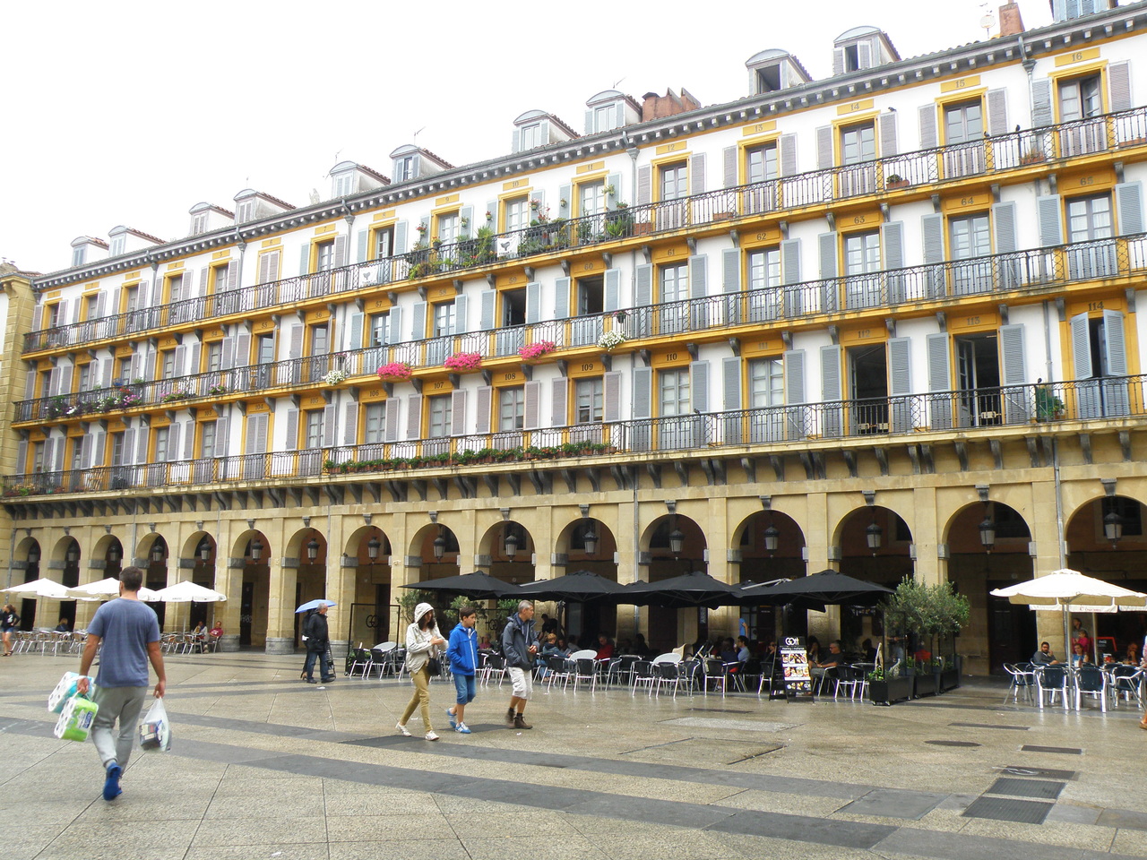 В Сан Себастьяне погода не улучшилась, люди ходили в куртках, другие купались в море. Мы попытались разобраться в местной испанской фишке - комплексном обеде + вино за 10-15 евро, но в кафехе, которая нам приглянулась, не смогли обьясниться с официанткой, там толи время закончилось, когда они те обеды делают, или что-то в таком роде. Так мы и не отведали "Menu del dia".