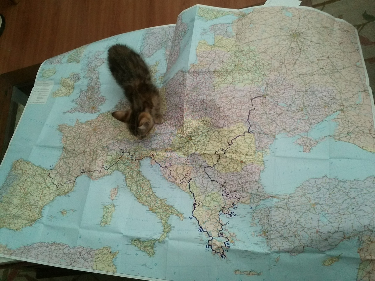 Заночевали мы небольшом городке Бетанзосе, возле Ла-Коруньи, Галисия (очередная автономия со своим языком). Там нас приютил местный музыкант-любитель Давид. Девушка от него ушла, в квартире висел флаг Испанской Республики, жил он один, не считая котенка. Лера приготовила ужин, мы отведали местного галисийского пива Estrella Galicia, которым Давид очень гордился. Также он предлагал нам помощь в изучении галисийского языка, но мы толком и испанский не запомнили! И вообще, где эта самая Испания, где будет только испанский язык?! Двуязычные указатели сопровождали нас от самой Андорры, а там, где их не было, то местные могли запросто исправить Gijon на Xixon.