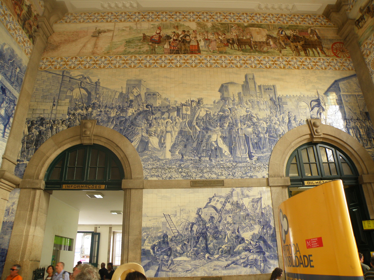 Первое, что бросается в глаза в Португалии- это плитка, которой облицовано всё, что только можно. Тут сия плитка называется азулежу. Ею облицованы порой даже самые малоподходящие для этого вещи, например, лавочка!