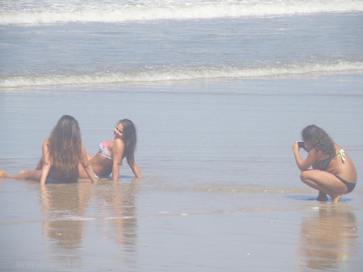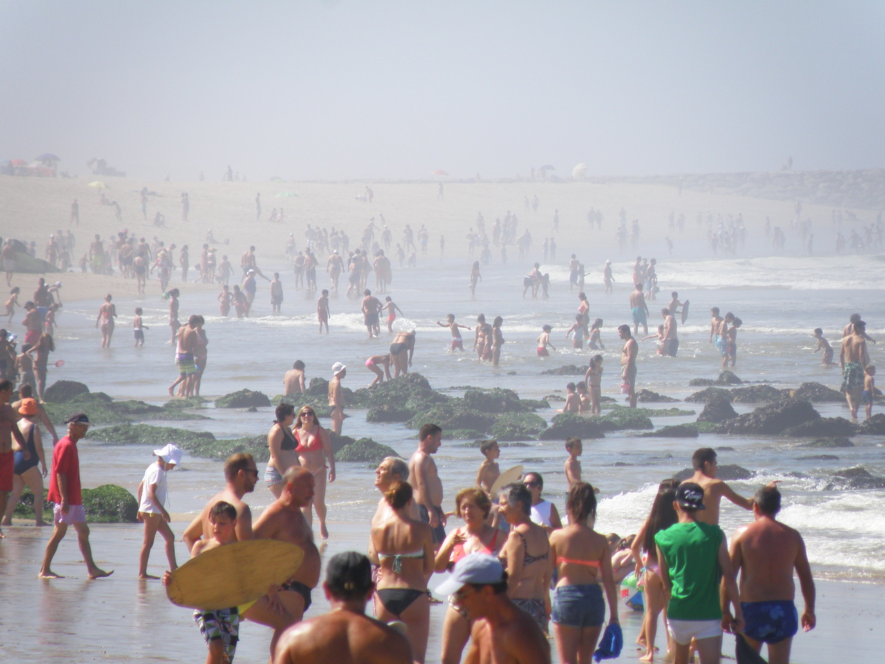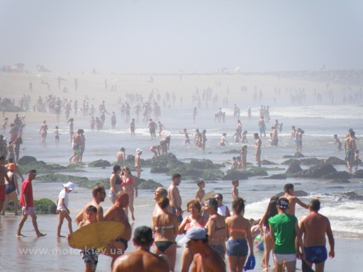 С различных афиш мы узнали, что буквально пару недель назад тут проводился чемпионат мира по пляжному футболу. А пляж тут действительно огромнейший. Ощущения на пляже весьма странные. В одно плечо с океана дует холодный ветер, а в другое палит солнце. Потому одно плече мерзнет, а другое перегревается одновременно )). Толпы людей на пляже были заняты чем угодно, кроме купания в океане. Они играли в футбол, пляжный теннис, строили что-то из песка или просто загорали.