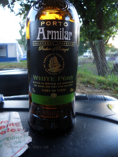 Продержал он нас около получаса на ресепшене. Вырвавшись от него, мы наконец-то разбили лагерь, поужинали и выпили свою первую бутылку портвейна на португальской земле. МакГрегор ел "ЧикенКиев ин Киев", мы пили портвейн в десятке километров от места, где разливаются все портвейны. Это был белый портвейн Armilar из Лидла. Портвейн средненький, как оказалось, он продавался в Лидлах по всей Европе: спустя месяц мы купили точно такой же в Перемышле, в паре километрах от границы с Украиной. В других супермаркетах, например в